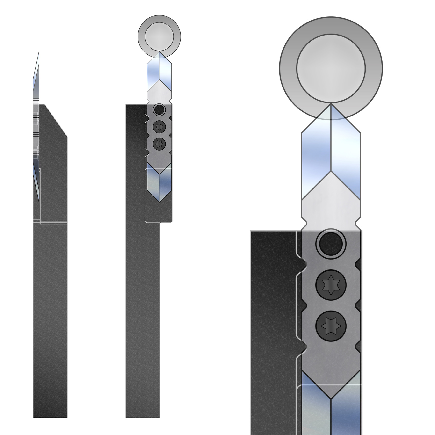 The entire chamfer concentrates on the cutting point of the Dieterle 12° cutting inserts. All polished facets converge to this extremely sharp point, through which soft plastics offer almost no resistance.