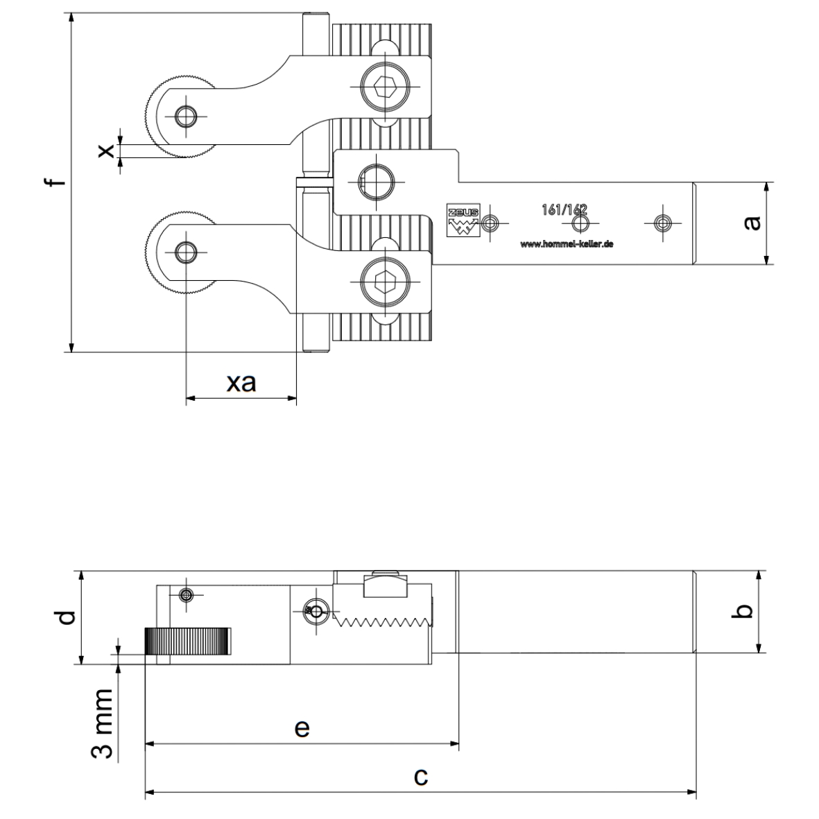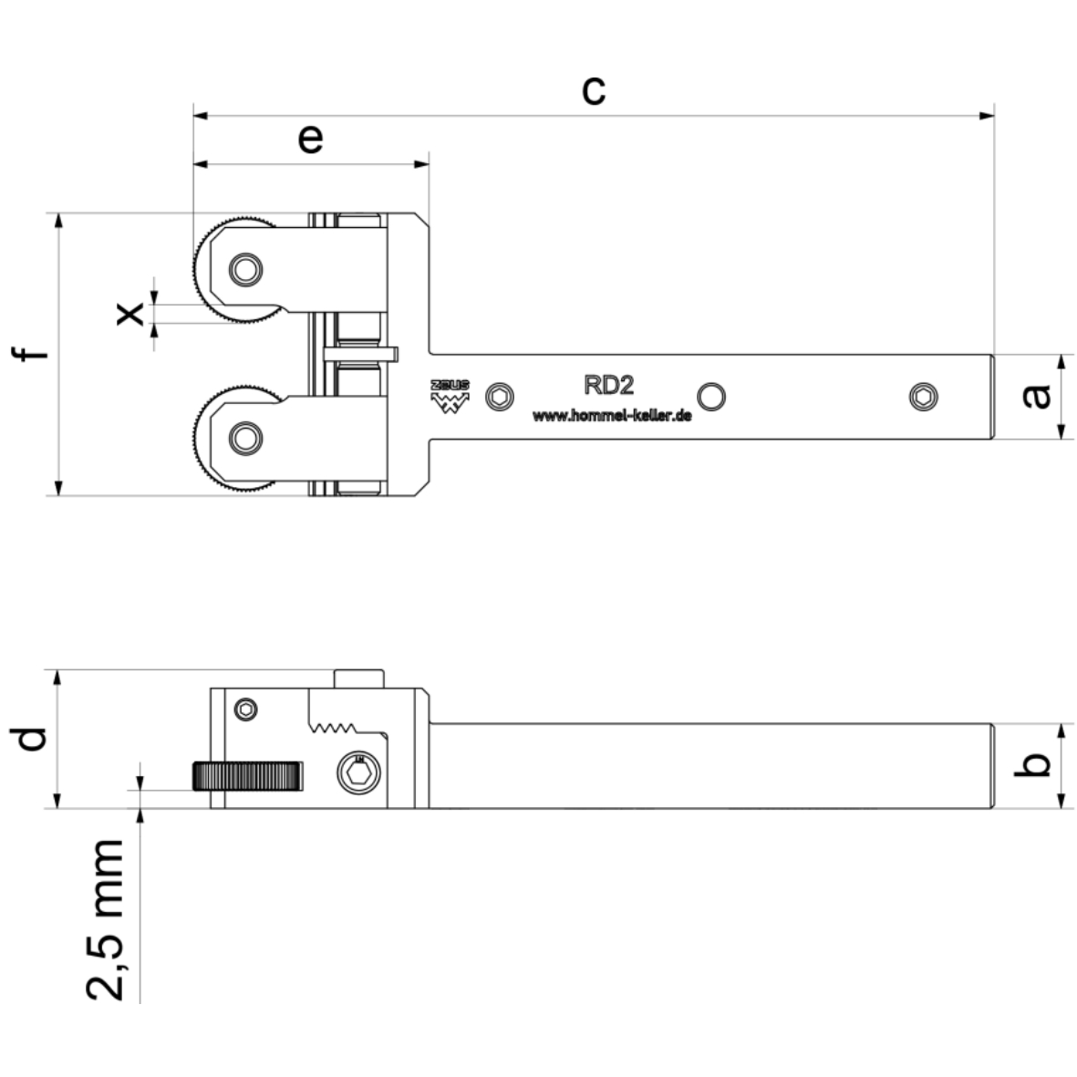 | Description | Article No. | Working area Ø | a | b | c | d | e | f | xa | x | Knurling wheels (Ø x b x b) | In cart | |