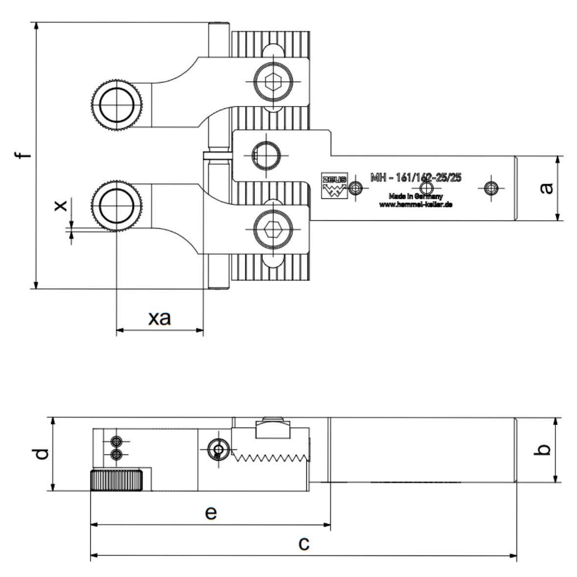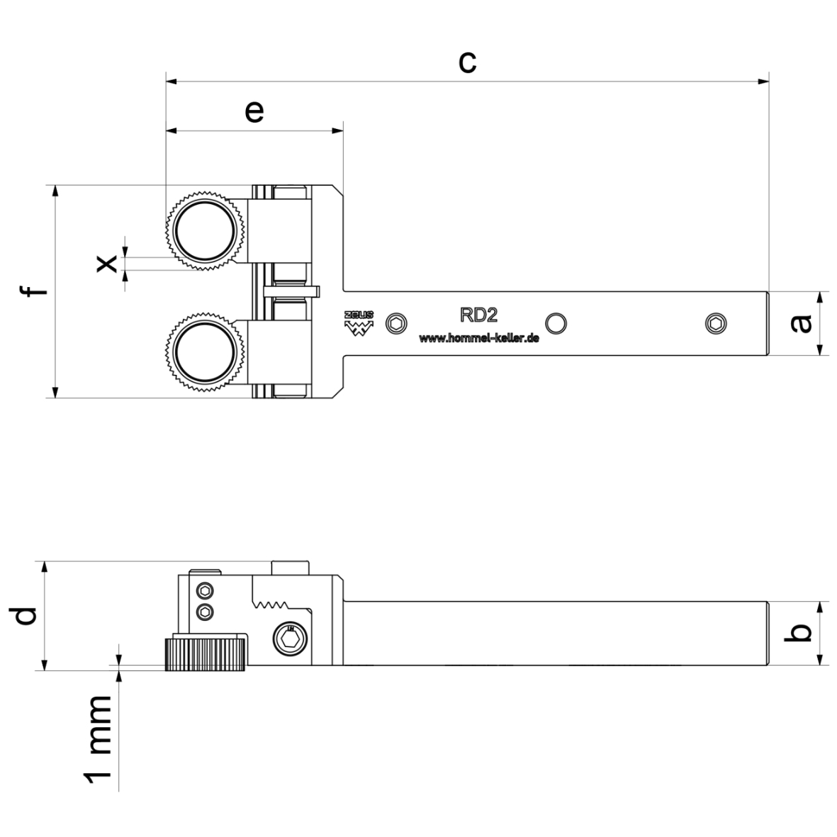 | Description | Article No. | Working area Ø | a | b | c | d | e | f | xa | x | Knurling wheels (Ø x b x b) | In cart | |