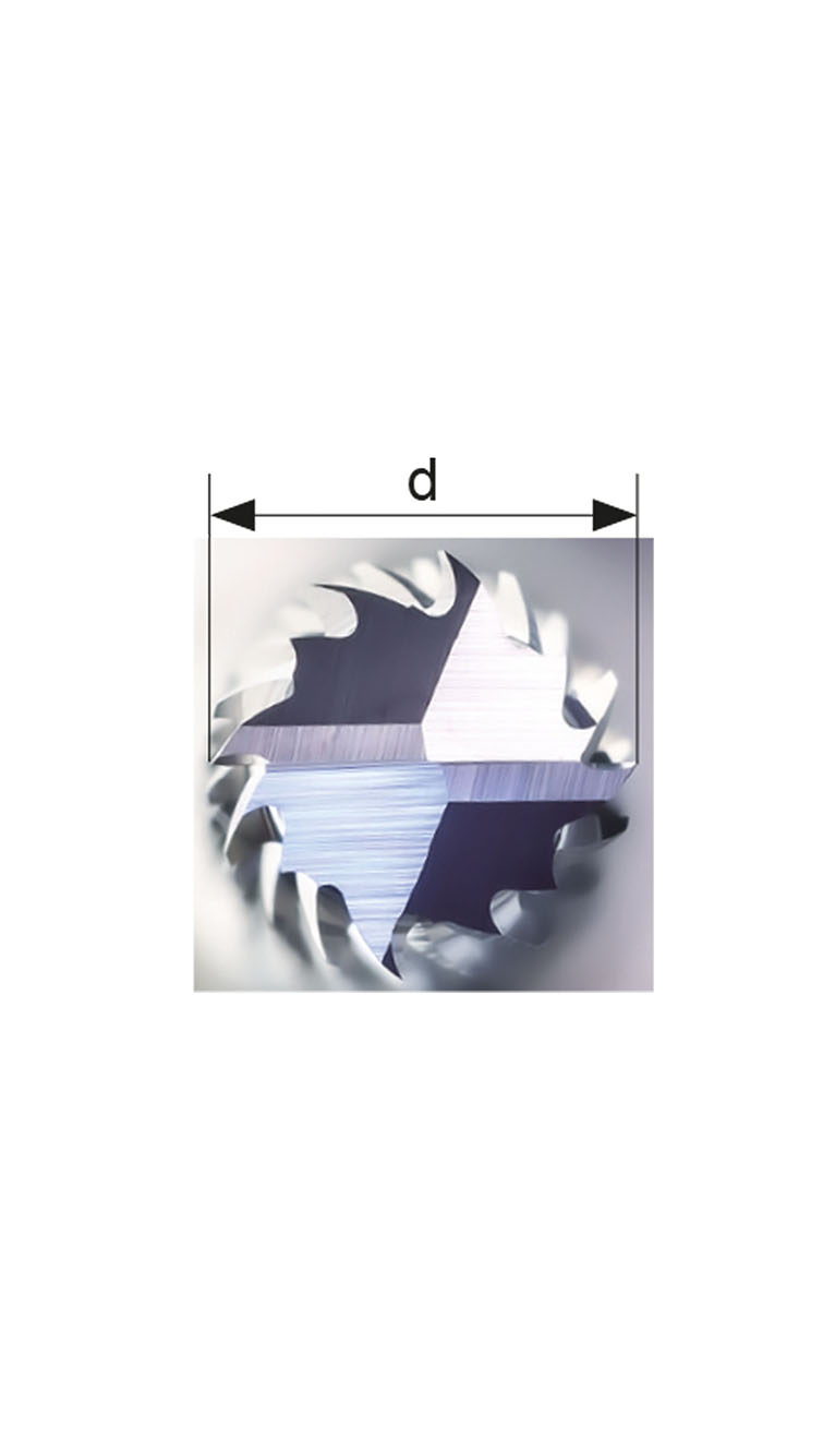 – der Fräser mit Schneide über Mitte zur Bearbeitung von faserverstärkten Kunststoffen