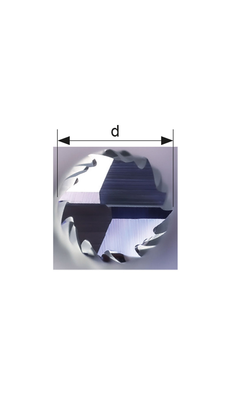 Zum Innenfräsen von Kunststoffen mit Füllstoffen bis auf den Grund empfehlen wir den M640 als Standardwerkzeug. Bei uns ist dieser in den Abmessungen Ø d = 3 / l = 6 mm bis Ø d = 10 / l = 32 mm erhältlich. Für längere Standzeiten empfehlen wir eine auf Anfrage erhältliche Diamantbeschichtung (CVD-Beschichtung).