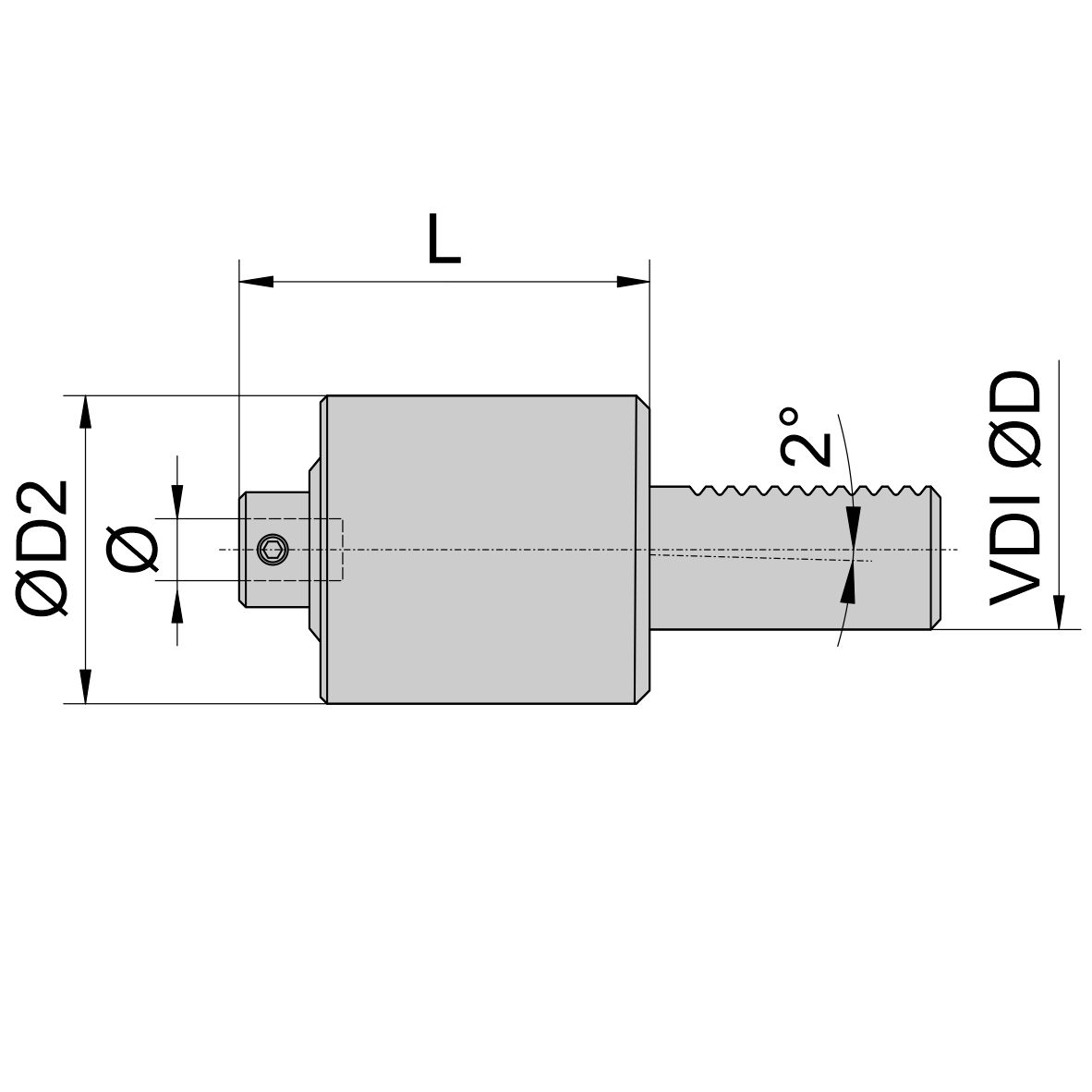 | BR-G16L-VDI40 | 162910 | 16 | VDI 40 | 90 | 105 | Ø16 x 45 |