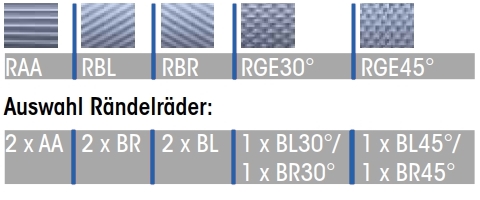 | Bezeichnung | Artikel-Nr. | Arbeitsbereich Ø | a | b | c | d | e | f | xa | x | Rändelräder (Ø x b x b) | In Warenkorb | |